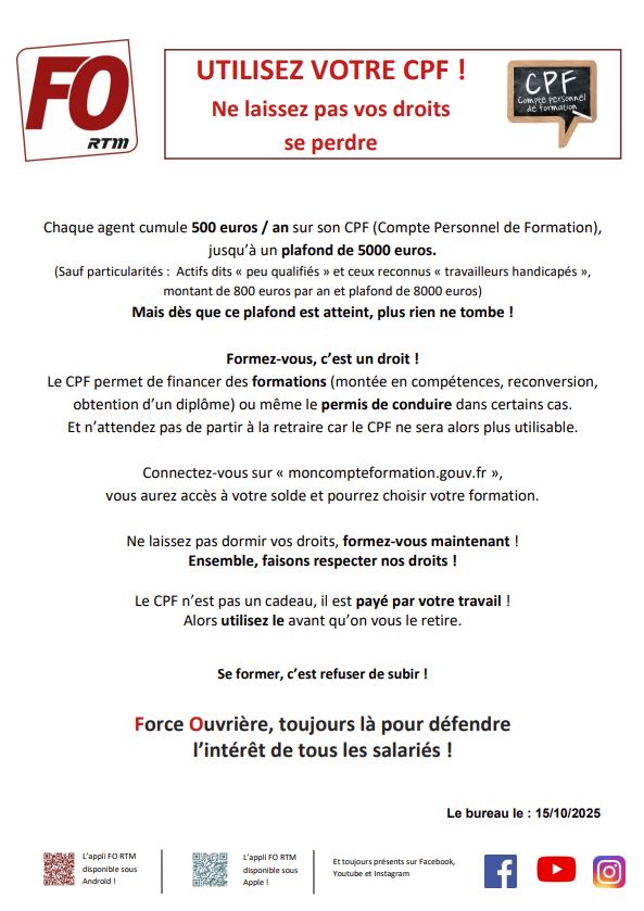 FO RTM, toujours là pour défendre l’intérêt de tous les salariés !